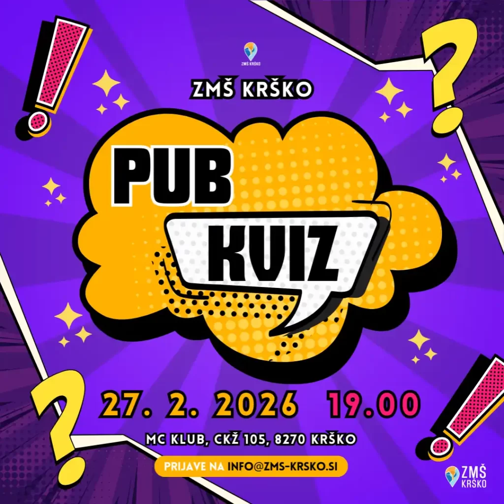 Pripravljeni na zabavo in izziv? Vabimo vas na PUB KVIZ, ki bo potekal 27. 2. 2026 ob 19.00 v Zavodu za mladino in šport Krško. Zberite svojo ekipo (po trije v ekipi) in se preizkusite v različnih tematikah! Poleg smeha in zabave vas čakajo tudi praktične nagrade! 𝐊𝐝𝐚𝐣: 27. 2. 2026, ob 19.00 𝐊𝐣𝐞: Zavod […]